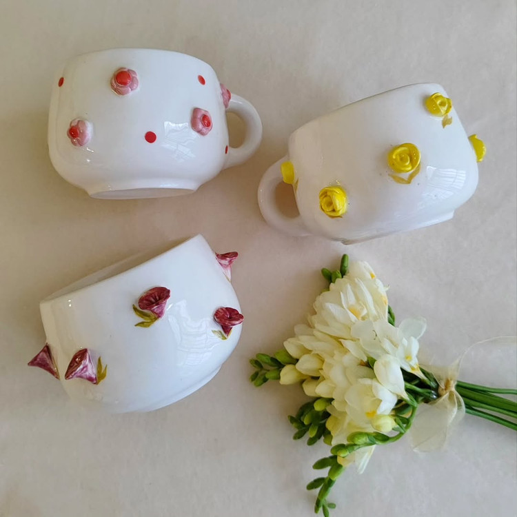 ماگ سرامیکی دست ساز با گل برجسته خرید مستقیم از تولید کننده