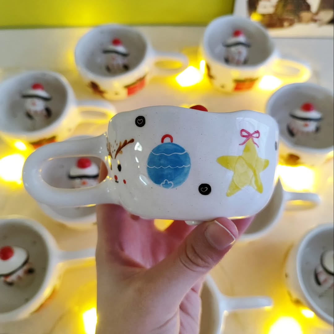 ماگ سرامیکی دست ساز سورپرایزی آدم برفی