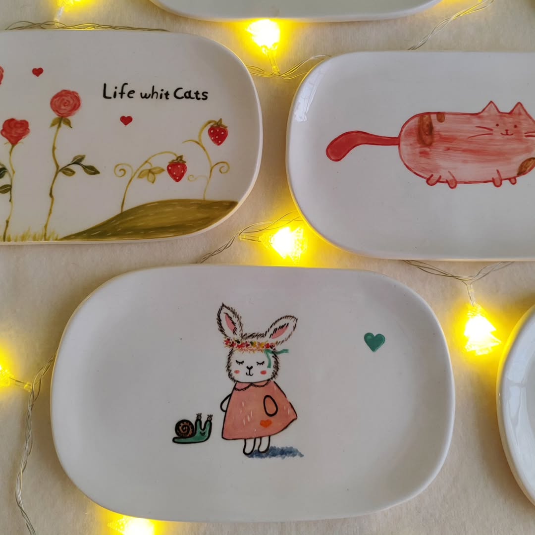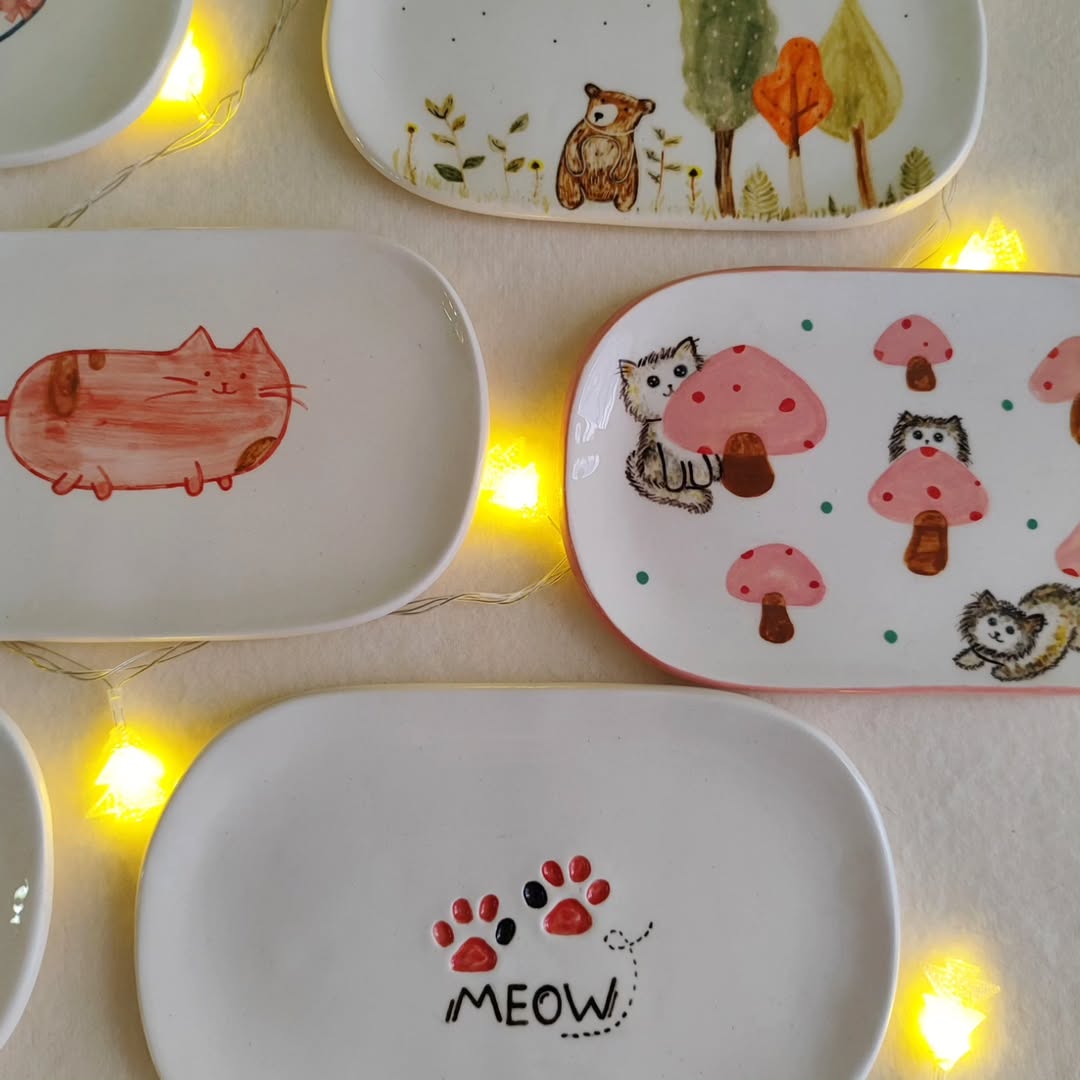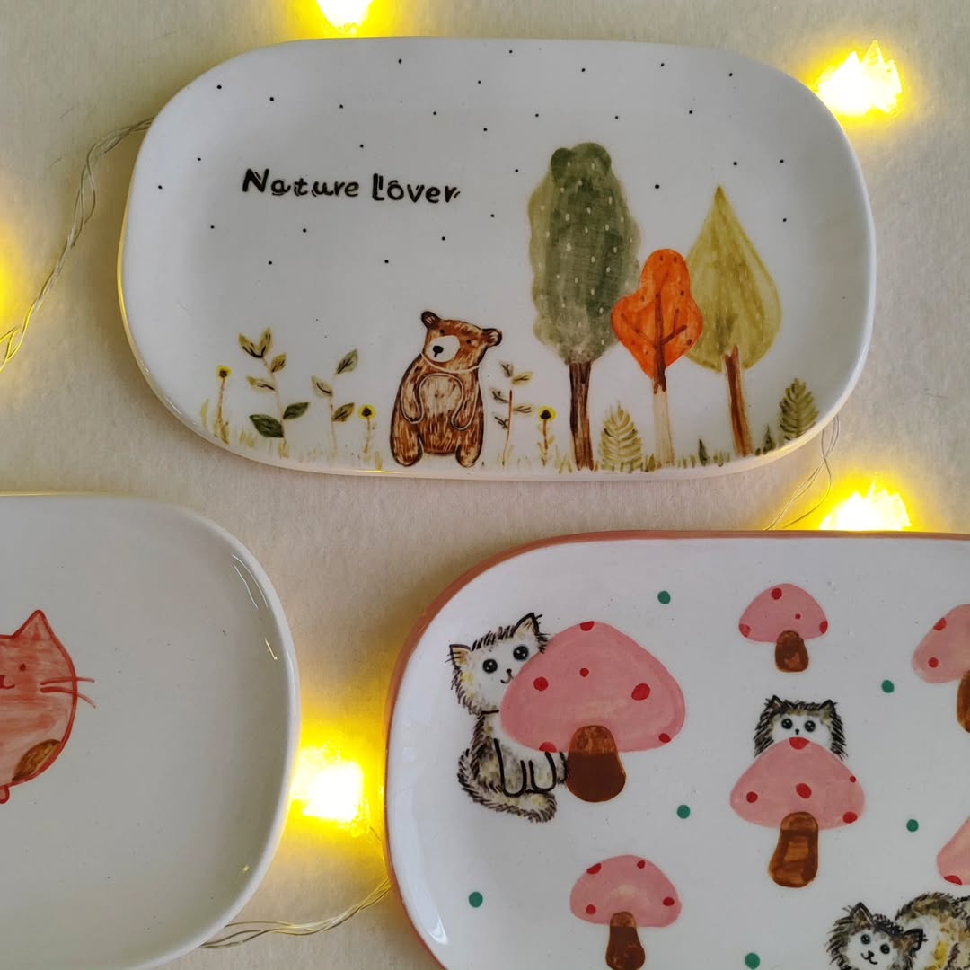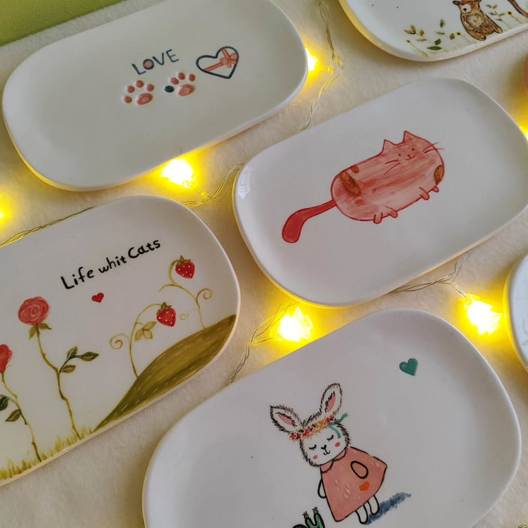 بشقاب های بیضی سرامیکی با طرح های فانتزی و زیبا مناسب برای سرو شیرینی، میوه، تنقلات از جنس سرامیک کاملاً قابل شستشو و قابل استفاده برای مواد غذایی گرم و سرد