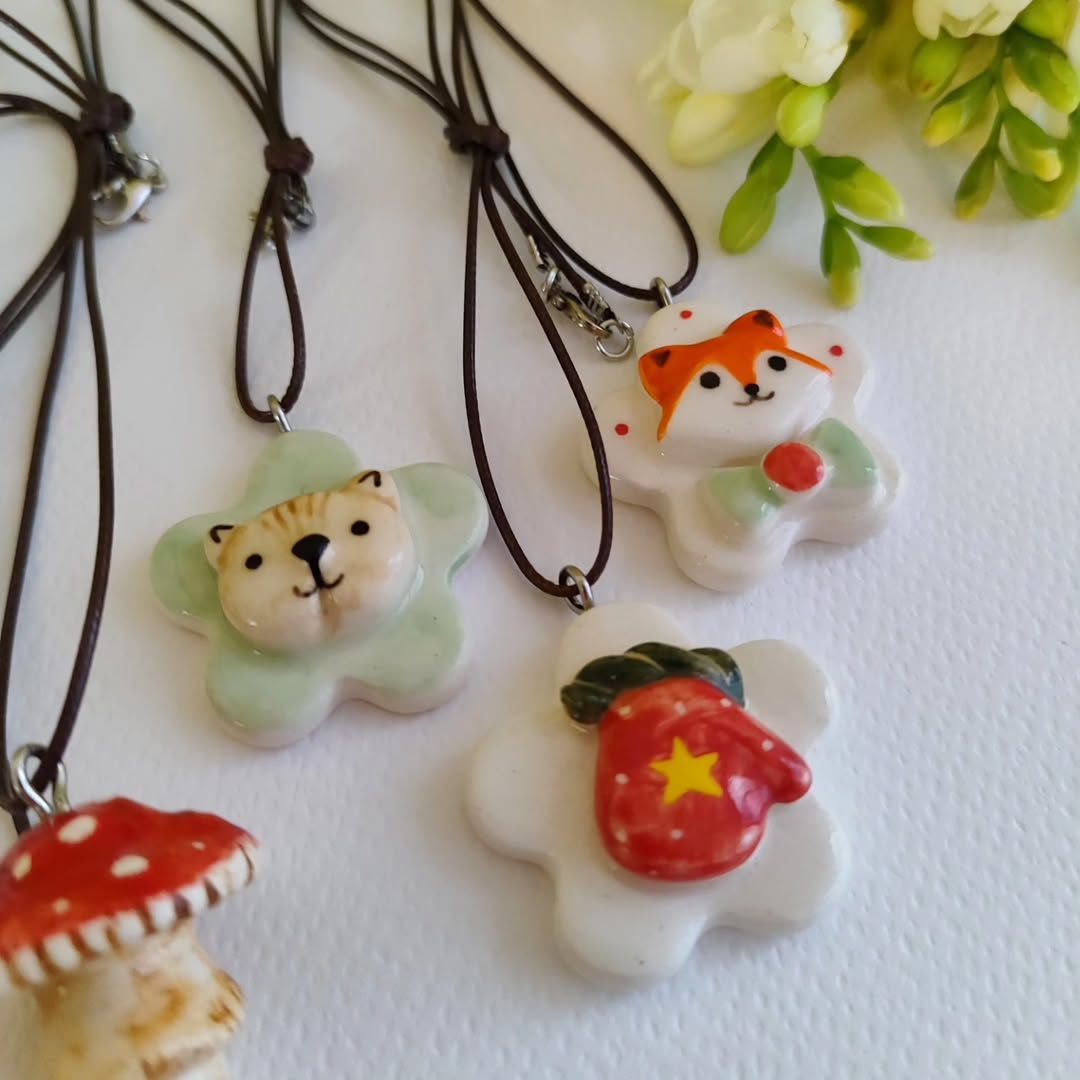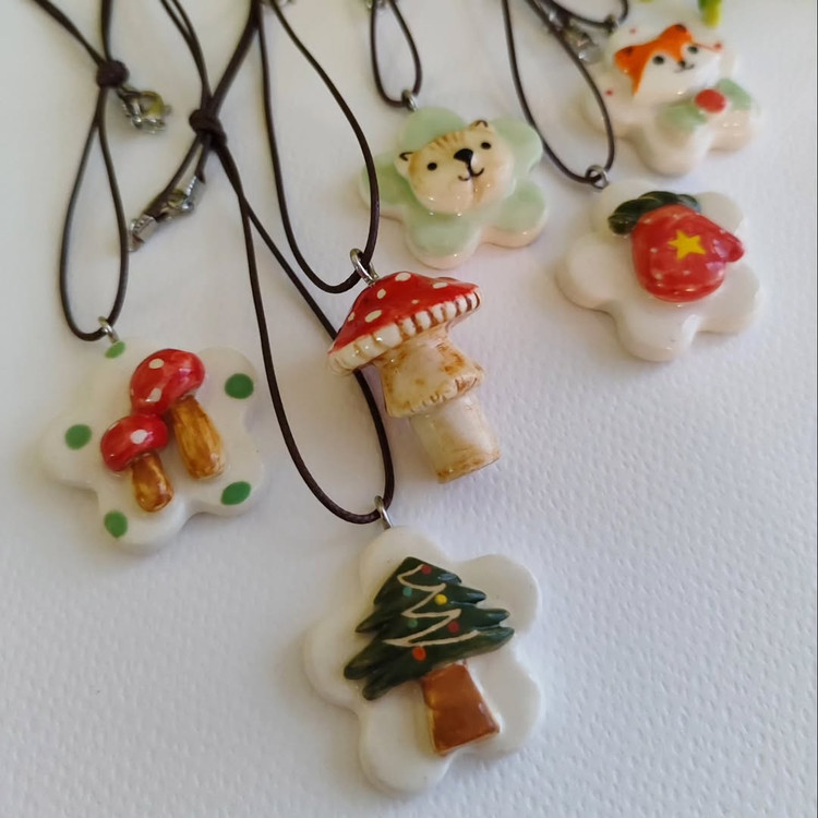 گردنبند های سرامیکی دست ساز با طرح های برجسته فانتزی، دارای قفل، حلقه و بند قیطانی