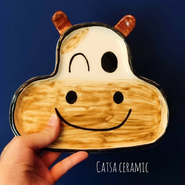 بشقاب سرامیکی دست ساز با طرح گاو زیبا