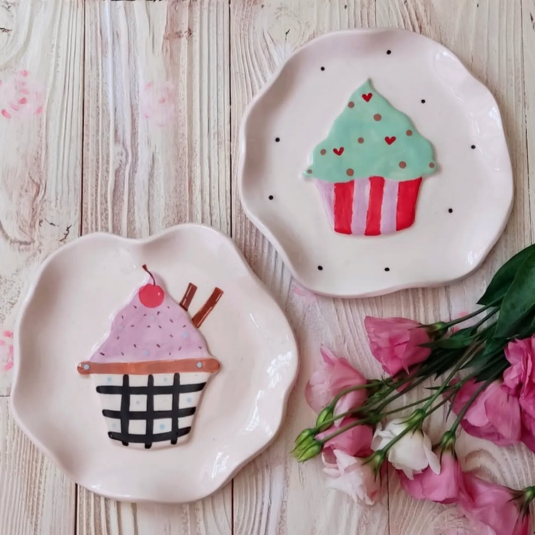 بشقاب سرامیکی دست ساز با طرح های برجسته کاپ کیک خرید مستقیم از تولید کننده